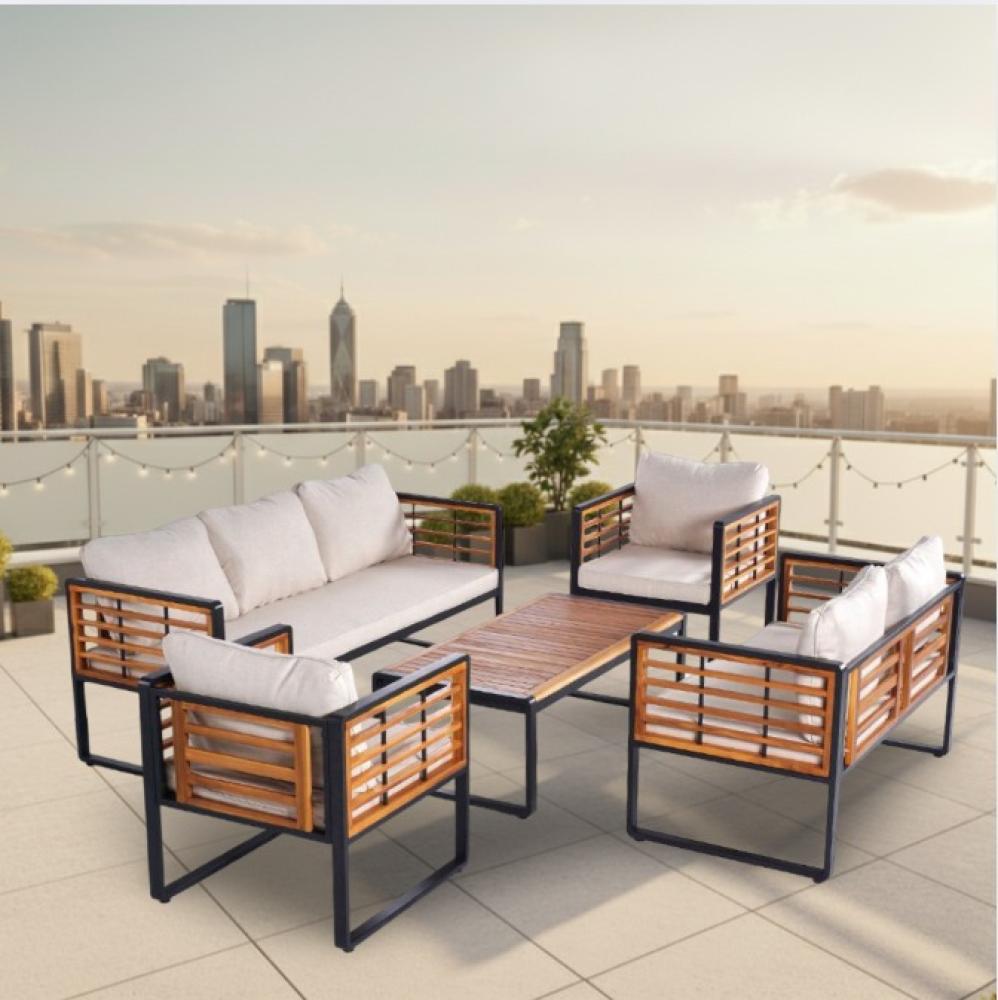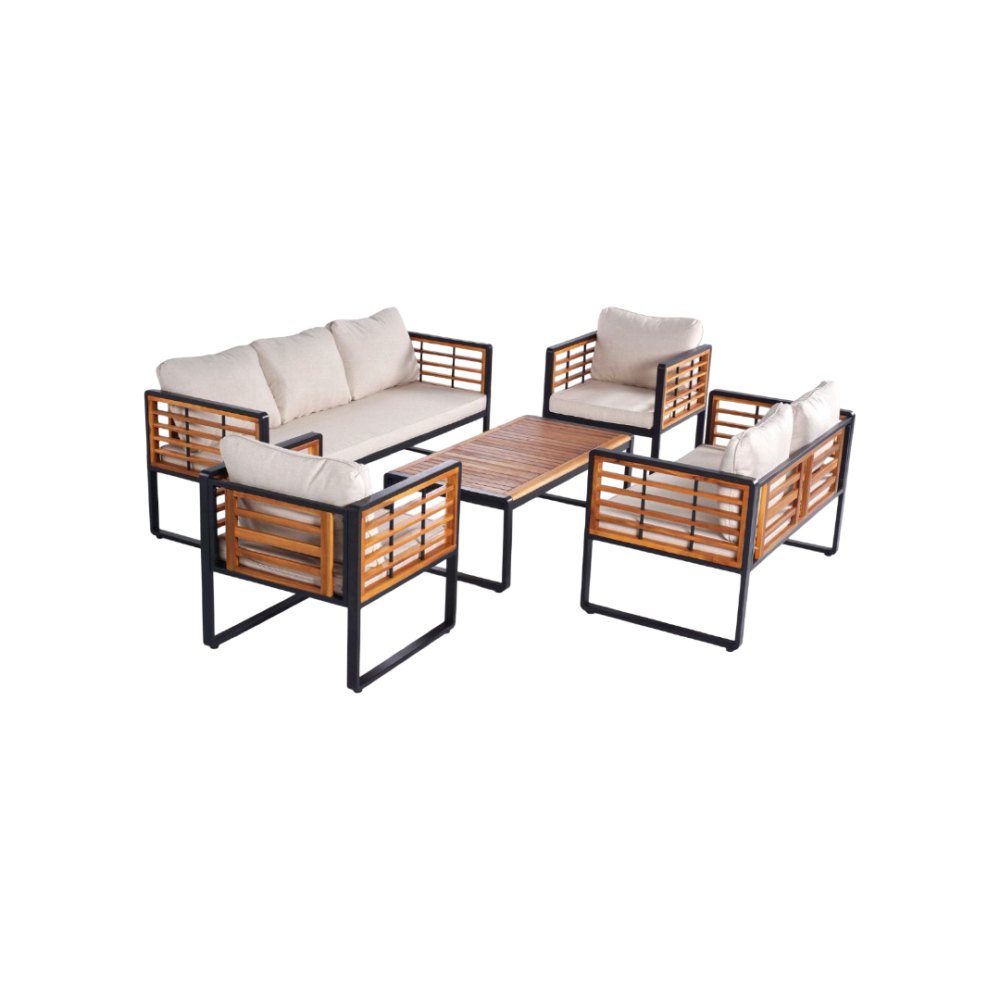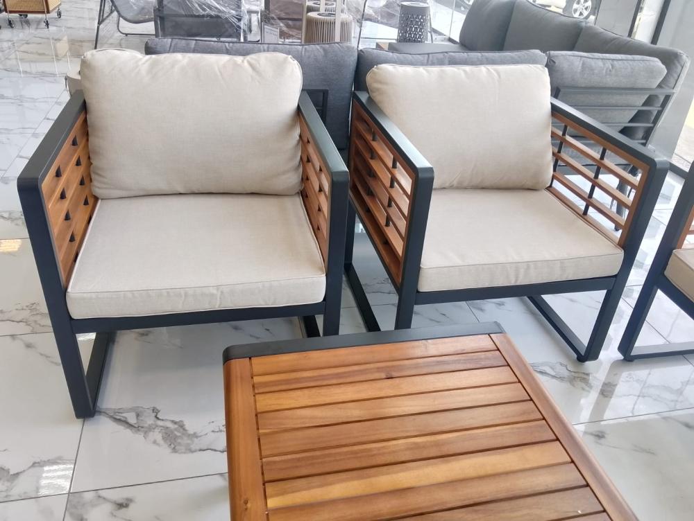 أضف لمسة من الفخامة والراحة إلى مساحتك الخارجية مع جلسة خارجية فيتنامي بتصميم مودرن من بيتنا. يجمع هذا الطقم بين التفاصيل الخشبية الطبيعية والإطار المعدني القوي ليمنحك توازناً مثالياً بين الأناقة والمتانة، ويحوّل حديقتك أو التراس الخاص بك إلى مساحة راقية للاسترخاء والضيافة.