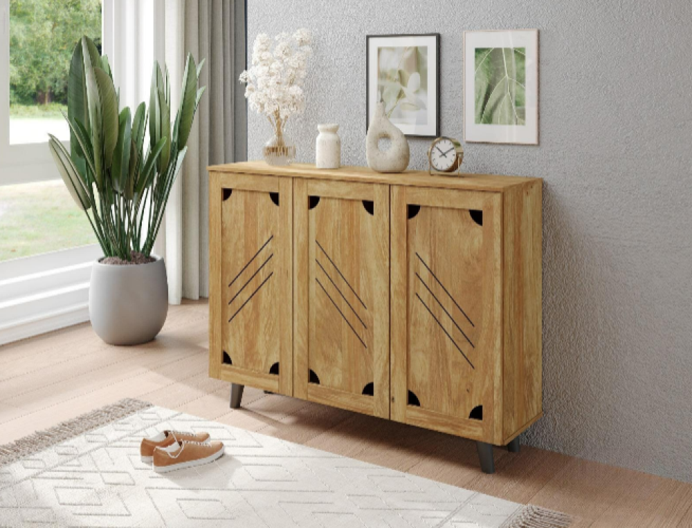 - الأبواب: ثلاث أبواب تغطي رفوف متعددة لتخزين عدد كبير من الأحذية
