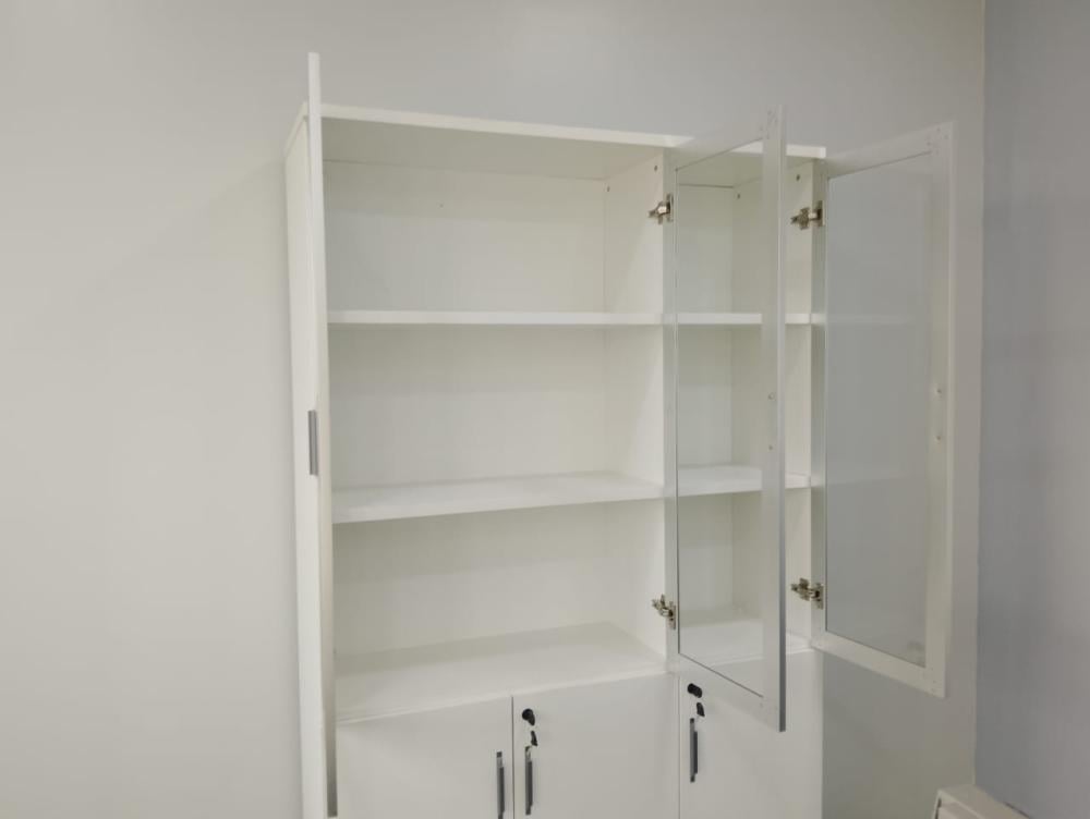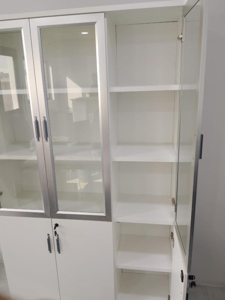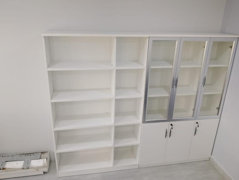 - مساحة تخزين متنوعة: يوفر الدولاب مساحة تخزين متنوعة بفضل الأرفف الداخلية والأبواب المغلقة والأبواب الزجاجية. يمكنك عرض الكتب والمجلدات بشكل أنيق خلف الأبواب الزجاجية، وتخزين الملفات والمستندات الهامة بشكل آمن خلف الأبواب المغلقة.