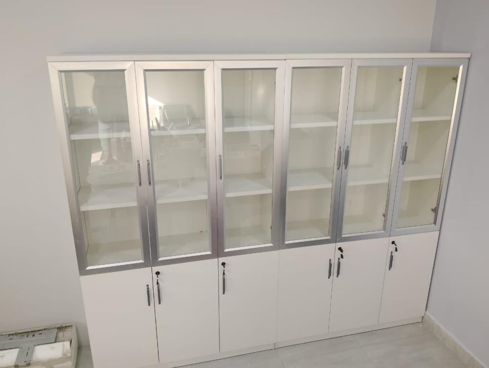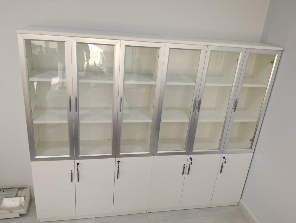 - واجهة زجاجية للعرض: تتيح الأبواب الزجاجية عرض الكتب والمجلدات والديكورات بشكل أنيق، مما يضيف لمسة جمالية للمكتب.