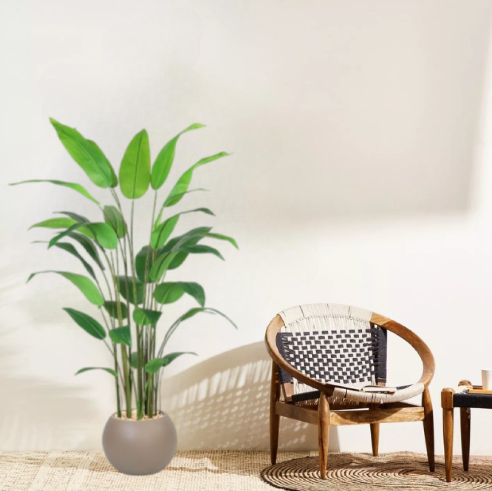 - الخامة: أوراق صناعية عالية الجودة تحاكي النباتات الاستوائية مثل شجرة الموز