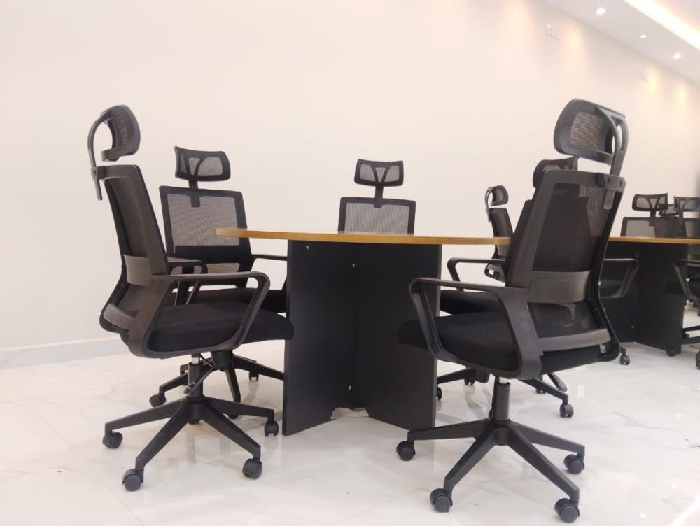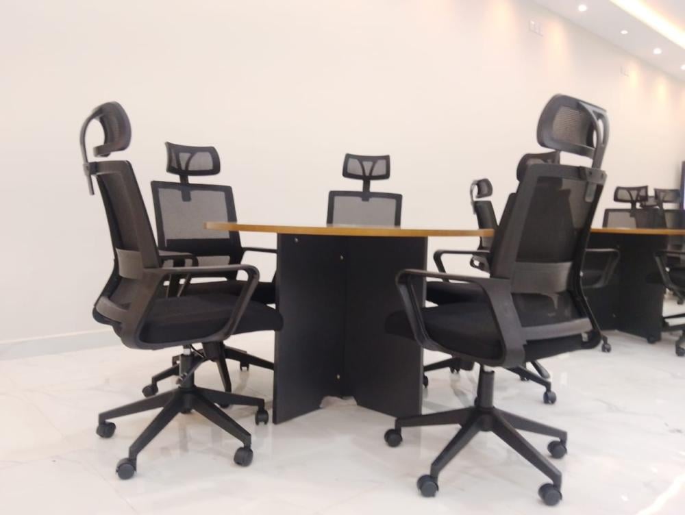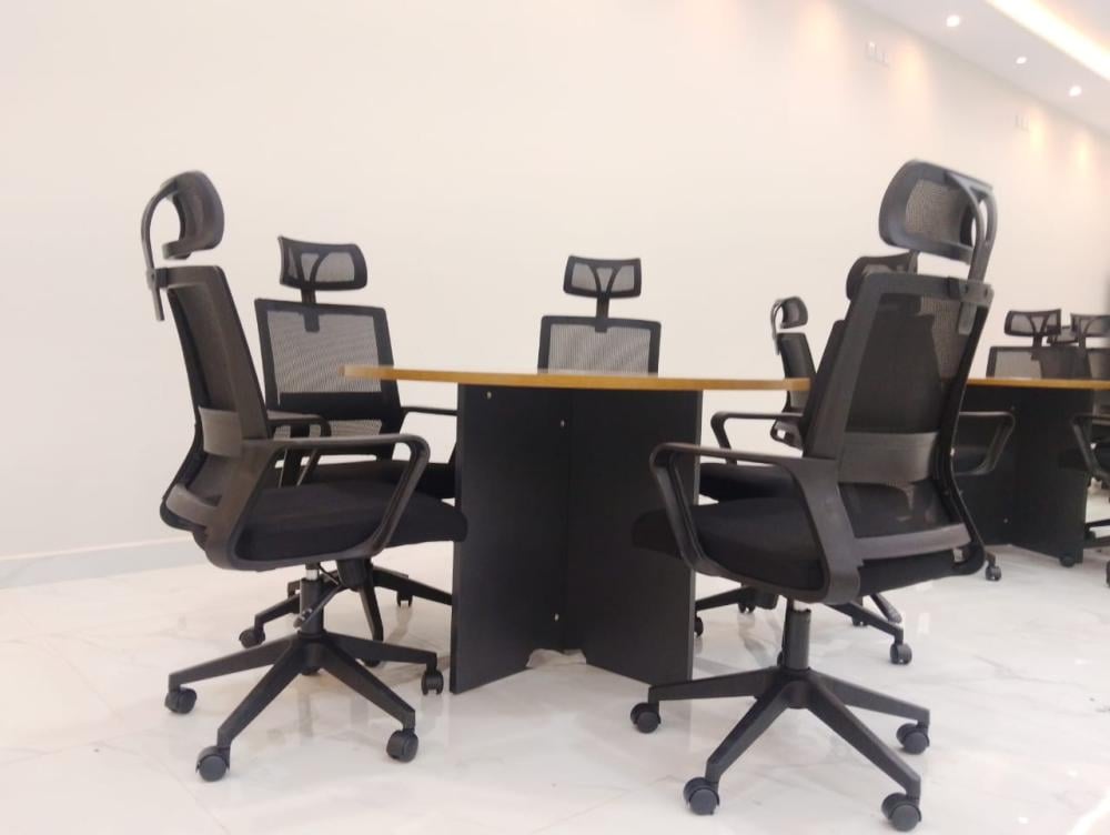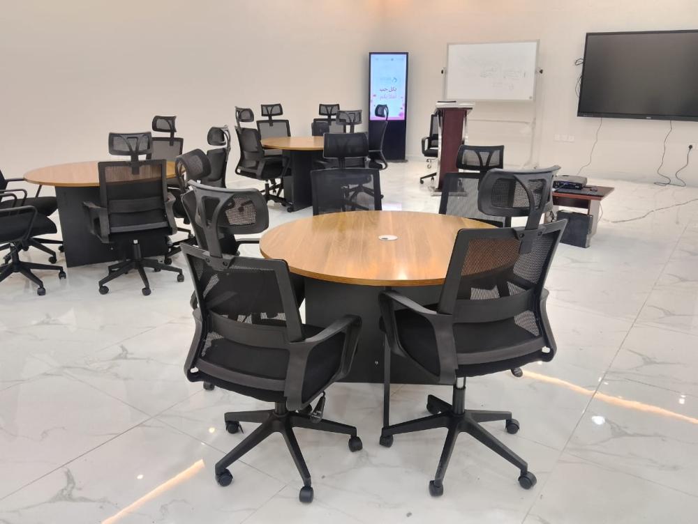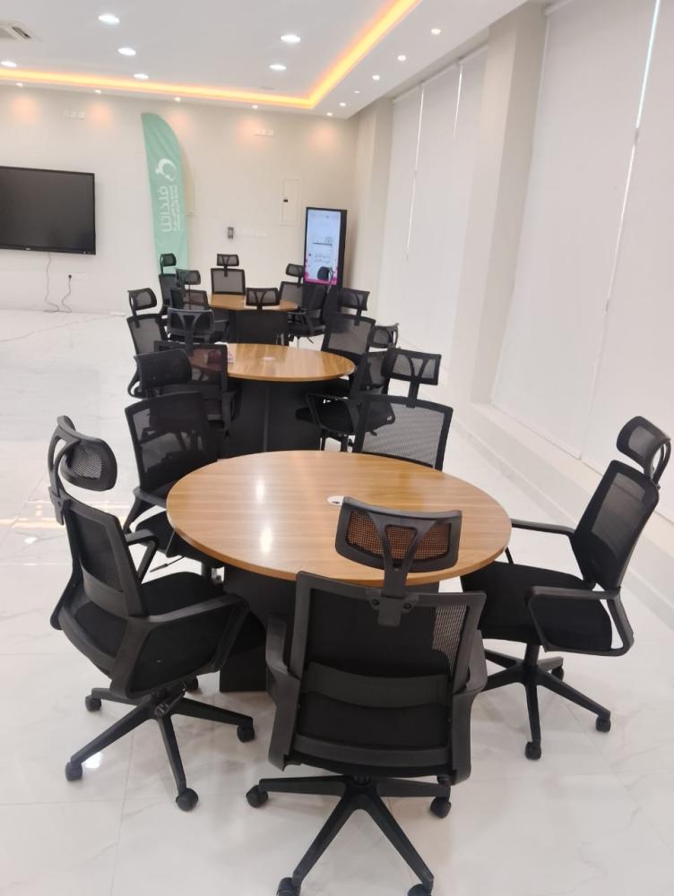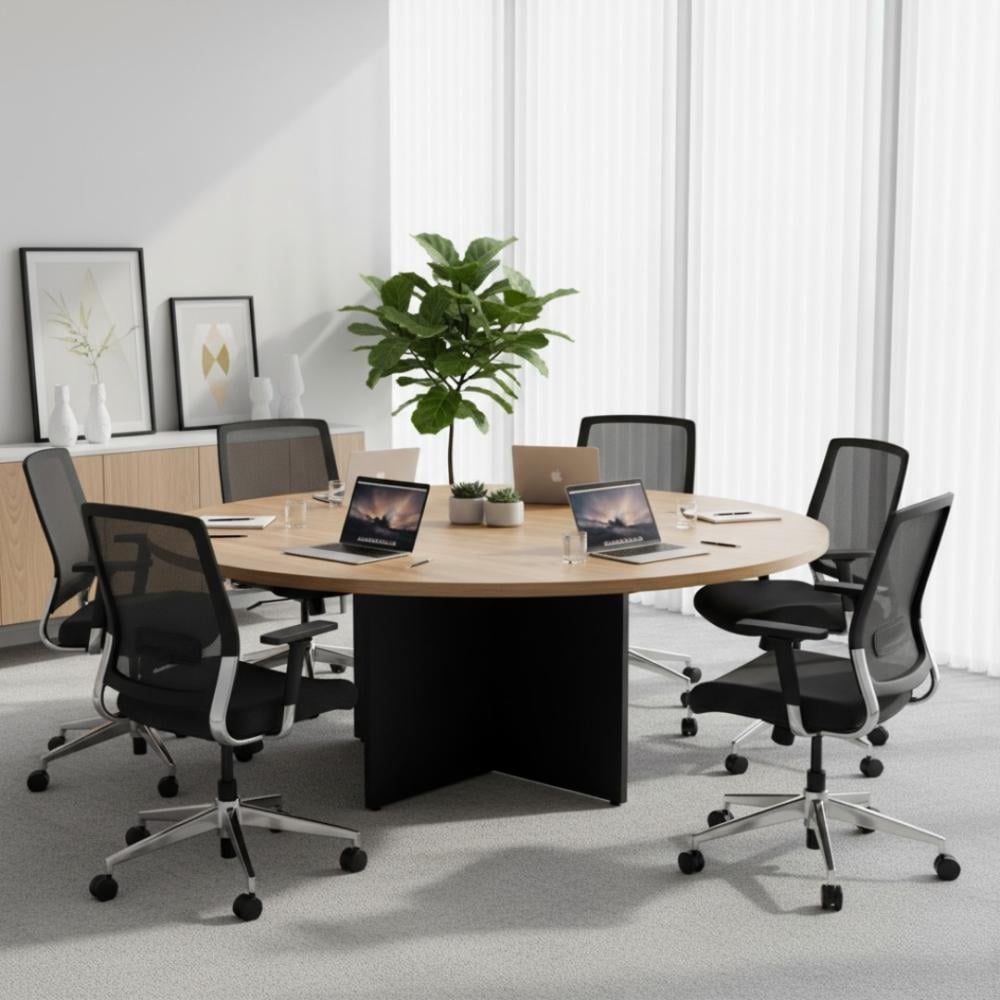 - تصميم دائري عصري: يشجع على التواصل والتفاعل بين المشاركين في الاجتماع.