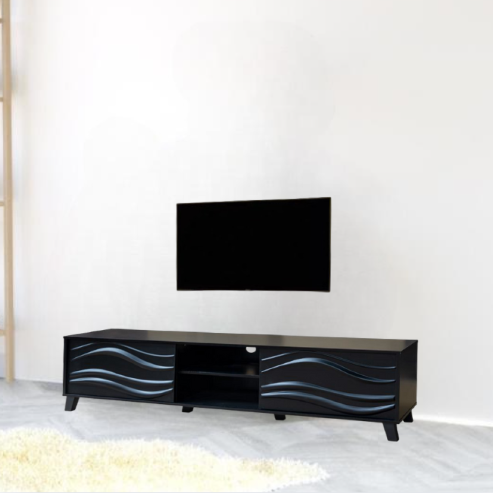• تصميم مميز: تتميز الطاولة بتصميمها الفريد بأبواب منحنية على شكل موجات، مما يضفي عليها مظهرًا عصريًا وجذابًا.