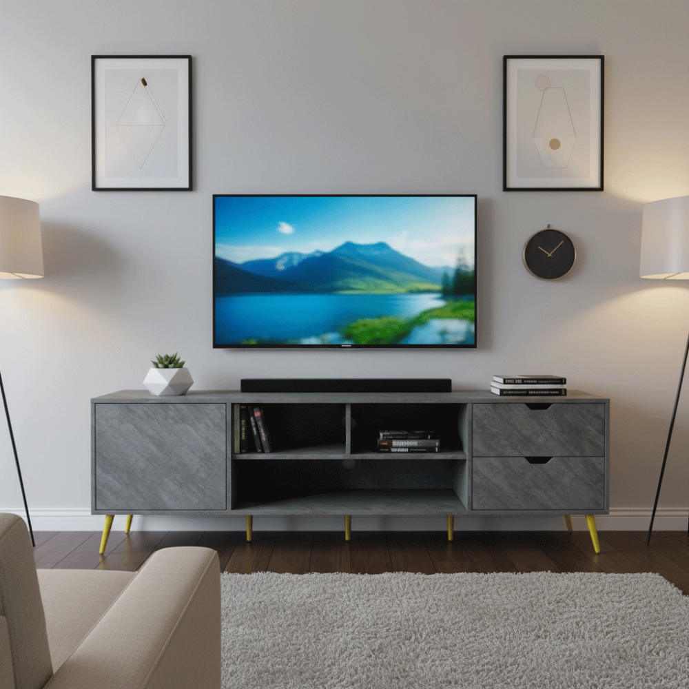 هل تبحث عن قطعة أثاث تضيف لمسة من الرقي إلى منزلك وتوفر لك حلاً عملياً لتنظيم أجهزتك الإلكترونية؟طاولة البلازما المودرن الرمادية هي الاختيار الأمثل!مو...
