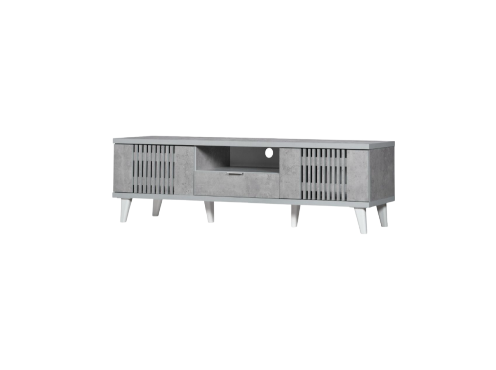 طاولة التلفاز دي مش بس شكل! هي عملية جدًا، مزودة بمساحة وسطية مفتوحة لوضع الأجهزة الإلكترونية زي الريسيفر أو البلايستيشن، بالإضافة إلى درج سفلي ومساحات تخزين مغلقة على الجوانب تخلي كل شيء مرتب ومرتب