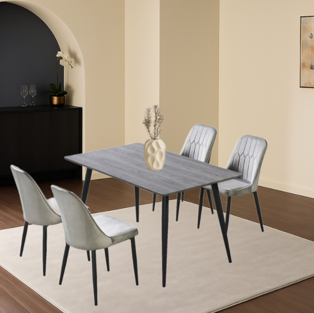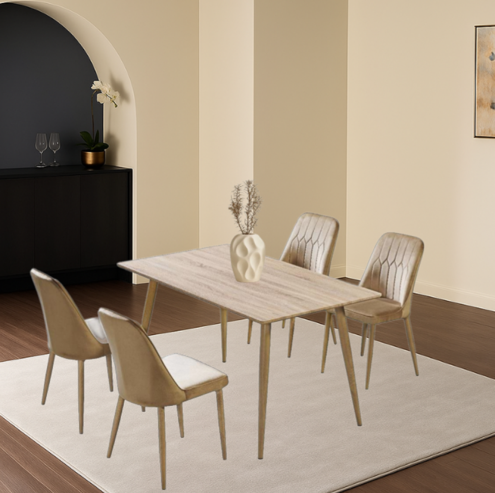 • مجموعة متكاملة: يأتي الطقم كاملاً مع طاولة وأربعة كراسي، مما يوفر لك الراحة والسهولة في اختيار الأثاث لمنزلك.