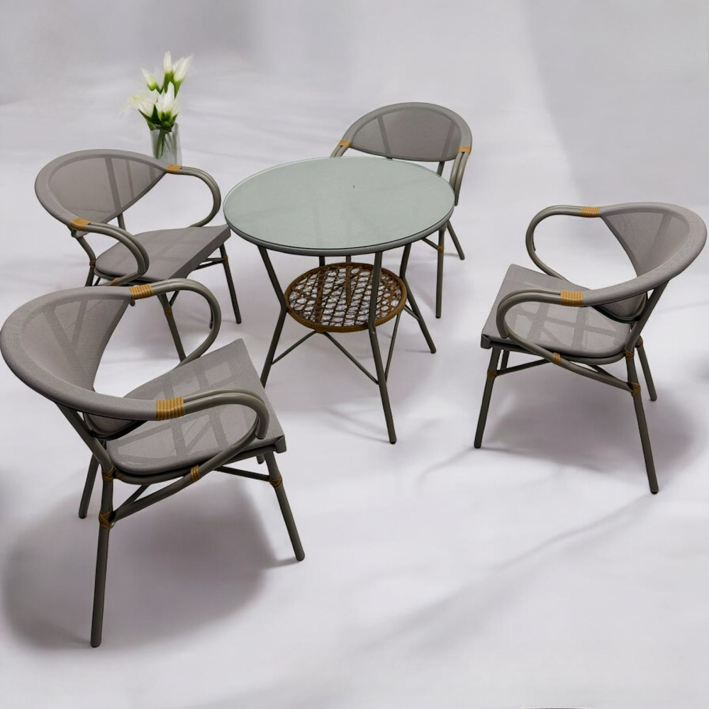 - مجموعة كاملة: تتكون المجموعة من طاولة دائرية وأربعة كراسي، مما يوفر مساحة جلوس مريحة لأربعة أشخاص.