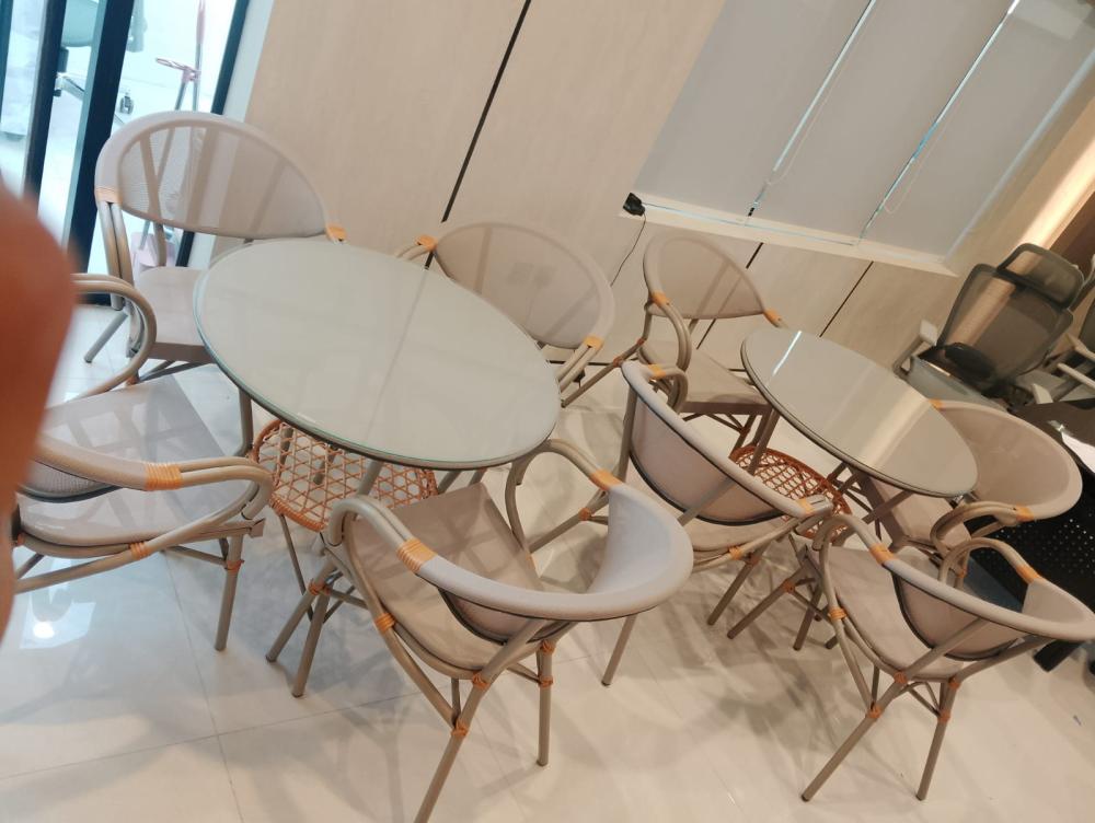 - تصميم خارجي عصري وأنيق: يجمع الطقم بين البساطة والفخامة، مما يضفي جمالية على أي مساحة خارجية سواء كانت حديقة أو شرفة.