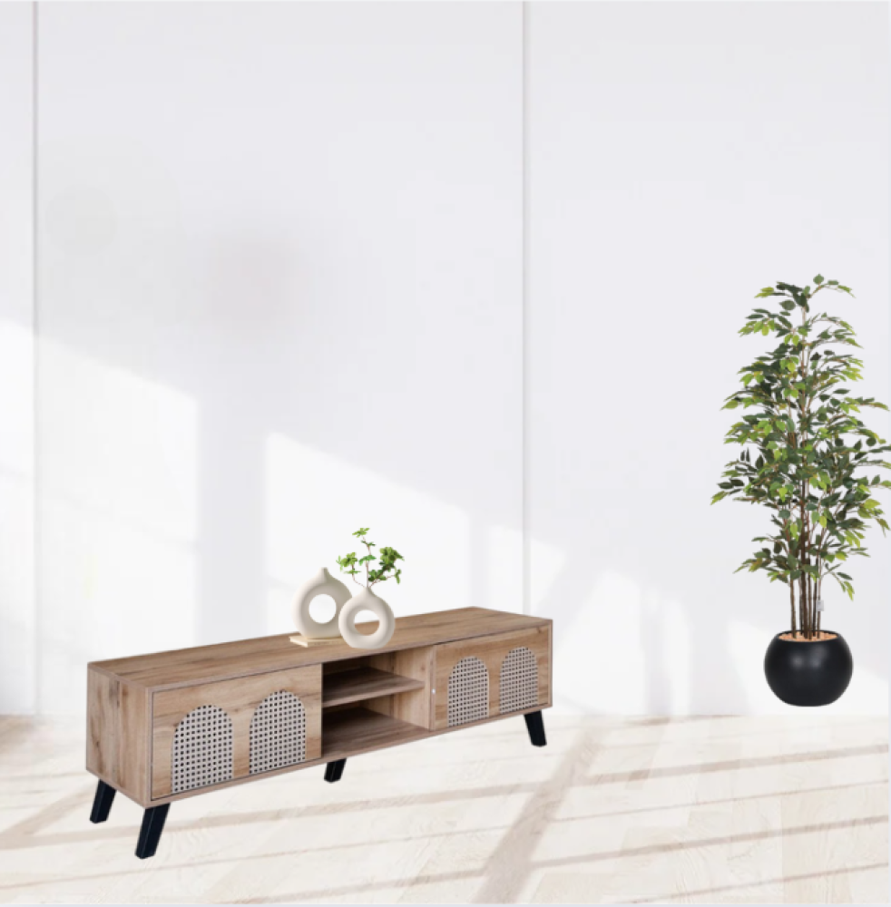 أضف لمسة من الأصالة والمعاصرة إلى منزلك مع طاوله تلفاز عصريه تجمع بين الفخامة والدفء الطبيعي من بيتنا. تصميم مميز يمزج بين جمال الخشب الطبيعي والتفاصيل الحديثة، لتكون القطعة المثالية التي تضفي على غرفة المعيشة لمسة من الرقي والتميز.