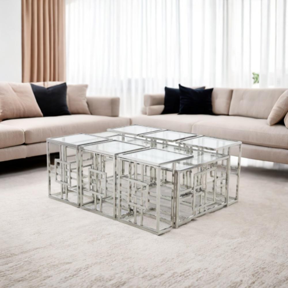 أضف لمسة من الفخامة والعملية إلى منزلك مع طقم طاولات خدمة 6+1 من بيتنا. يجمع هذا الطقم بين التصميم العصري والوظائف المتعددة ليكون خيارًا مثاليًا لغرف المعيشة أو مجالس الضيافة.