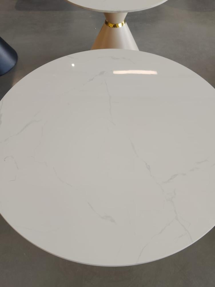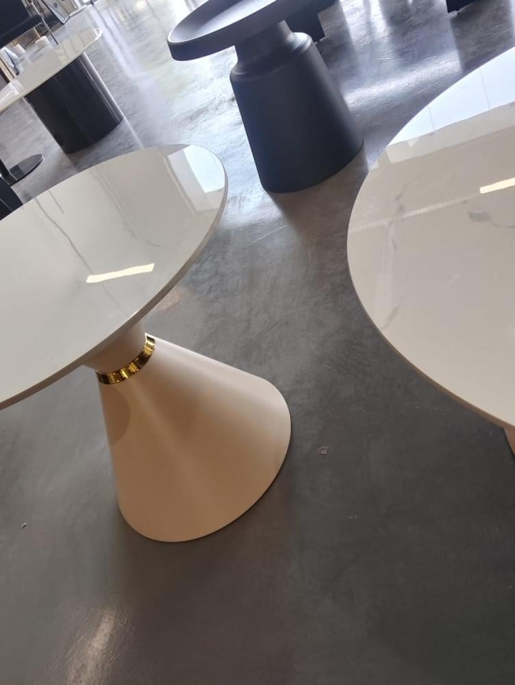 من بيتنا ستور نقدم لك طقم طاولات خدمة 1+1 بتصميم دائري باللون البيج الأنيق، قطعة فنية تجمع بين الفخامة والبساطة لتضفي لمسة راقية بسطح رخام وقاعدة معدنية على أي مساحة داخل منزلك أو مكتبك. تصميمه العصري ولونه الهادئ يجعلان منه خياراً مثالياً لمحبي الذوق الرفيع والتناسق العصري.