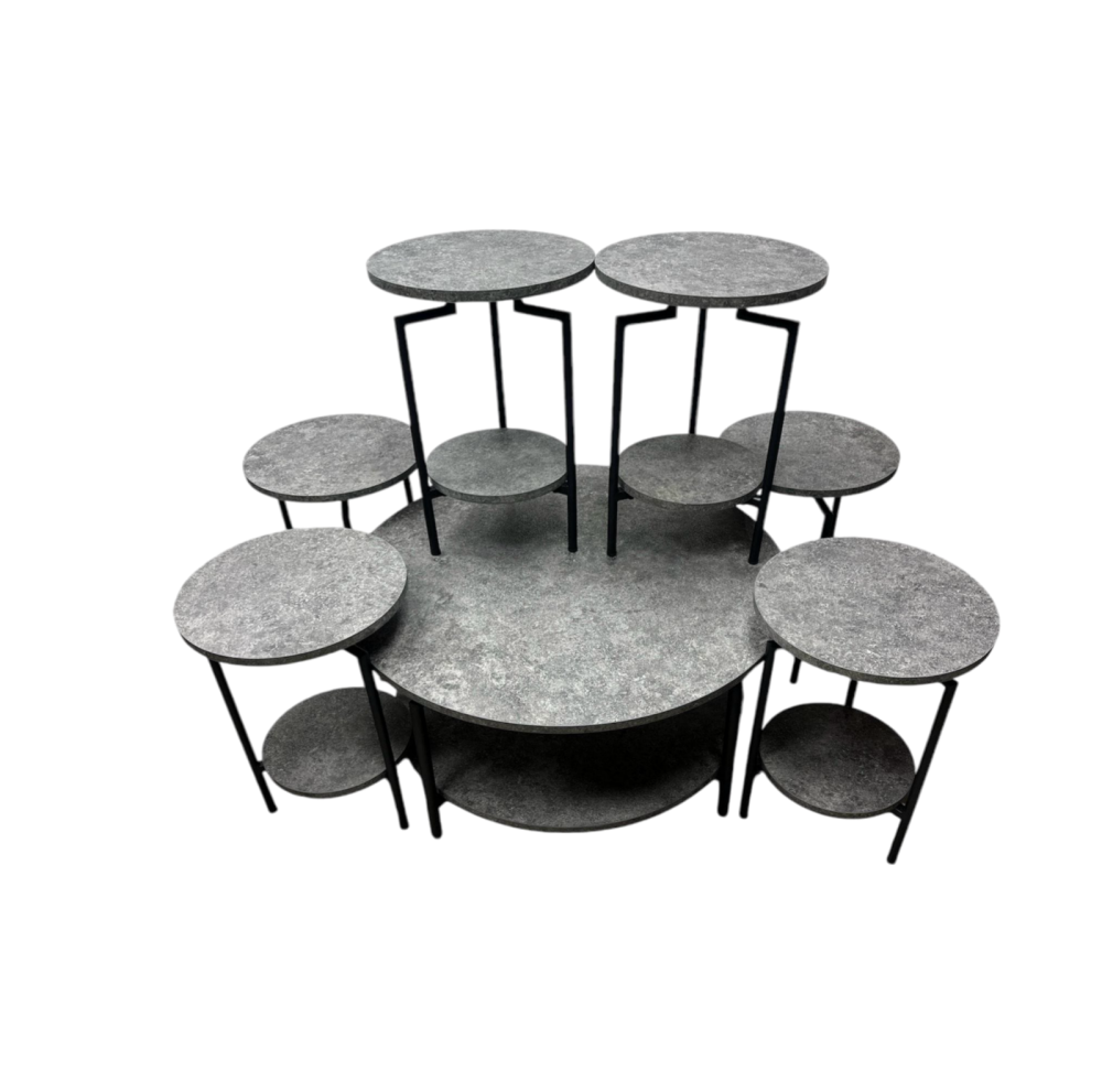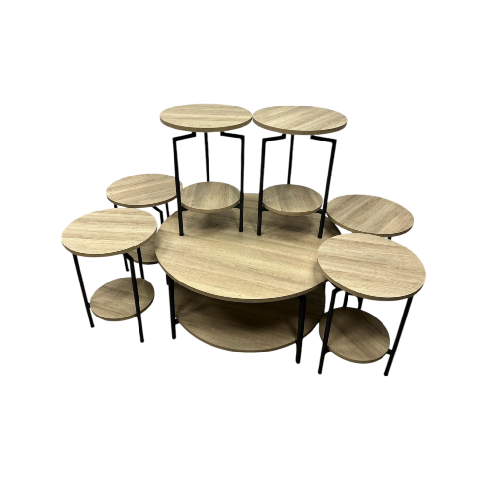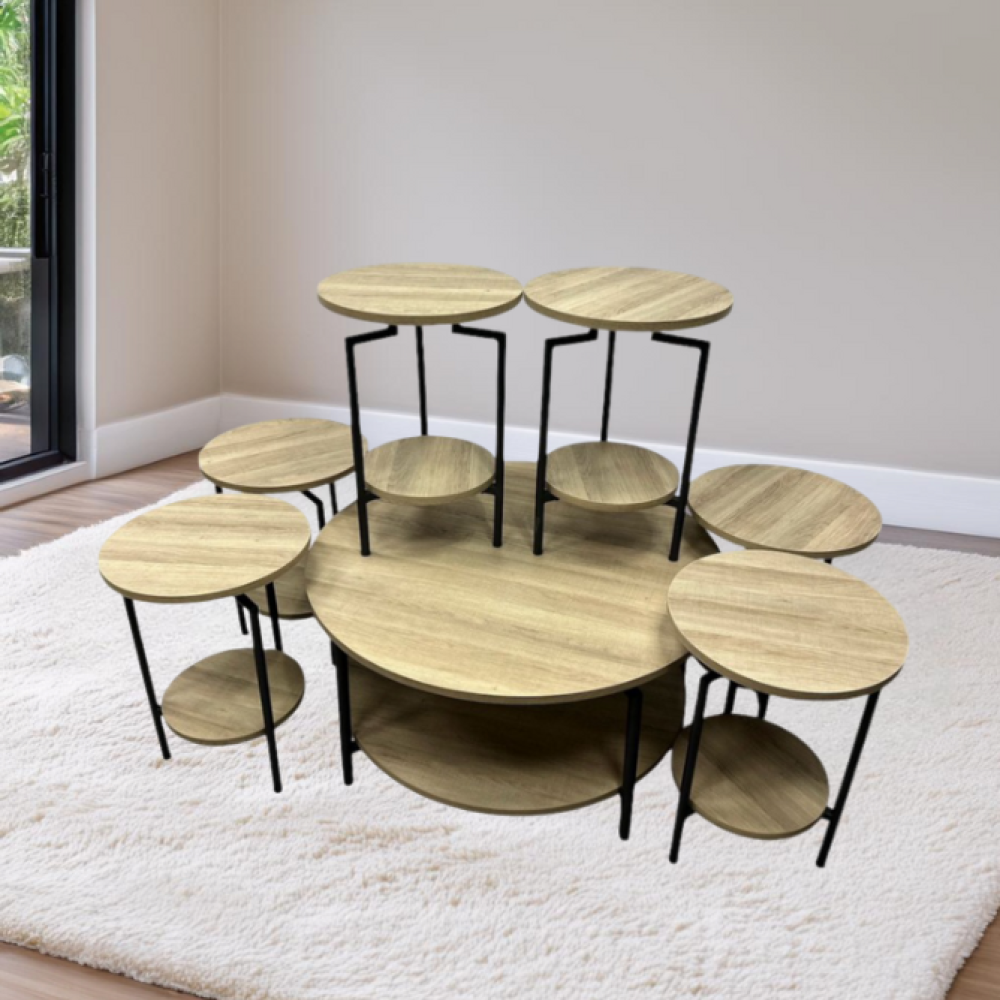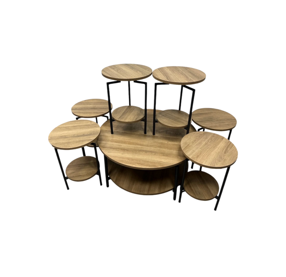 طقم طاولات خدمه تصميم عصري وعملي:مزيج المواد: تجمع الطاولة بين الخشب الطبيعي أو المقلد بلون بني دافئ والإطار المعدني الأسود، مما يخلق مظهرًا عصري... المزيد