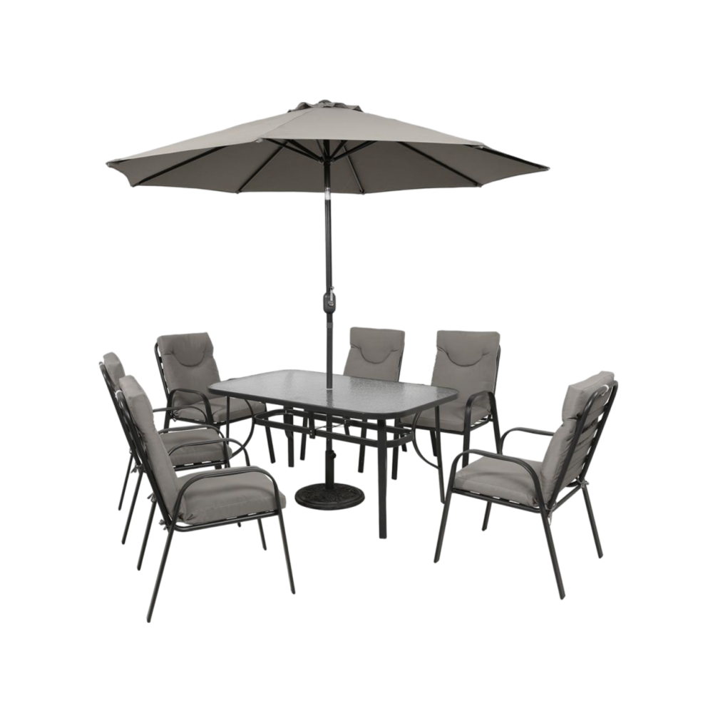 أضف لمسة من الرقي والعملية إلى مساحتك الخارجية مع طقم طاولة و6 كراسي خارجية أنيقة وعملية من بيتنا. يجمع هذا الطقم بين الراحة والجمال ليكون خيارًا مثاليًا للحدائق، الشرفات، والمساحات المفتوحة.
