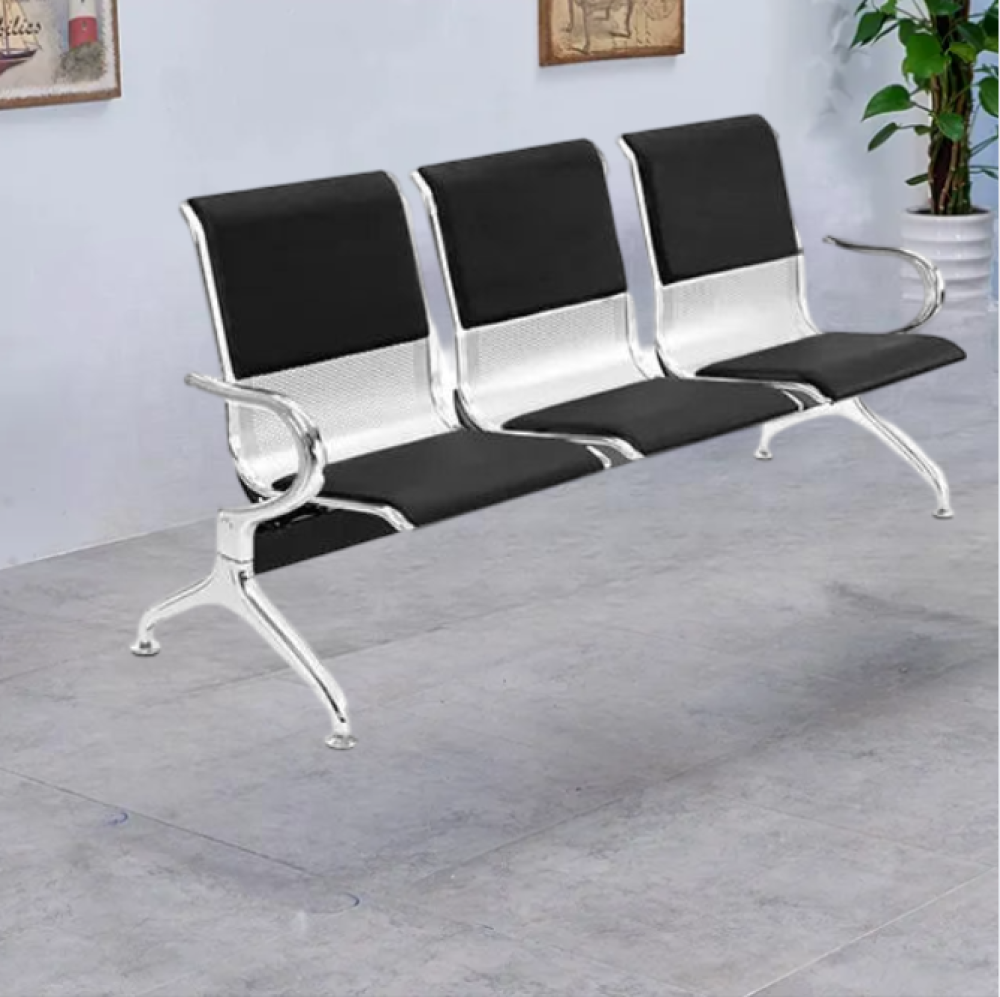 كرسي انتظار ثلاثي استيل بلمسة جلدية فاخرة