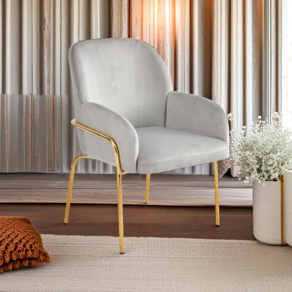 المخمل الأسود: يغطي الكرسي قماش مخملي رمادي ناعم الملمس، مما يضفي عليه مظهرًا فاخرًا وأنيقًا. المخمل معروف بقدرته على إضافة لمسة من الدفء والراحة إلى أي مساحة.