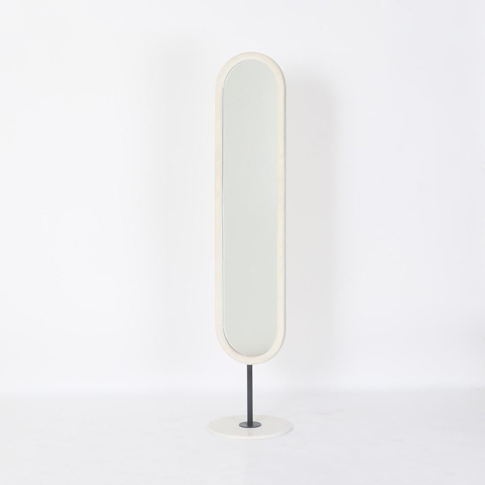 هذه المرآة الحائطية الأنيقة والحديثة هي قطعة أثاث متعددة الاستخدامات تضيف لمسة من الأناقة إلى أي غرفة. تتميز بإطار بيضاوي الشكل مصنوع من مادة عالية الجودة، مما يوفر متانة وقوة. الإطار الأبيض العصري يضيف لمسة من النعومة والرقي، بينما يوفر الأساس الأسود الداكن الدعم والاستقرار.