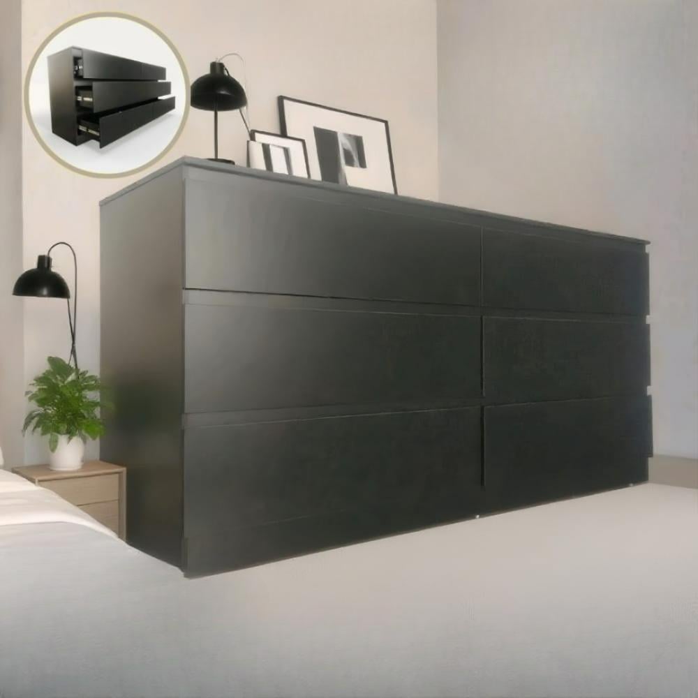 هذه الوحدة الأنيقة تتكون من ستة أدراج واسعة، مرتبة في صفين، مما يوفر مساحة تخزين كبيرة ومتعددة الاستخدامات للملابس، المفروشات، أو أي أغراض أخرى تحتاج إلى تنظيم. تتميز بتصميم عصري بسيط باللون الأنيق، مما يسهل تنسيقها مع مختلف أنماط الديكور. الأدراج مصممة لتنزلق بسلاسة، وتوفر سهولة الوصول إلى محتوياتها. حجم الوحدة يجعلها مثالية لغرف النوم الرئيسية، غرف الضيوف، أو حتى كمساحة تخزين إضافية في غرف المعيشة.